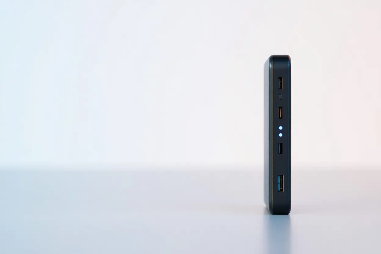 Portable charger with dual USB ports for fast mobile charging.